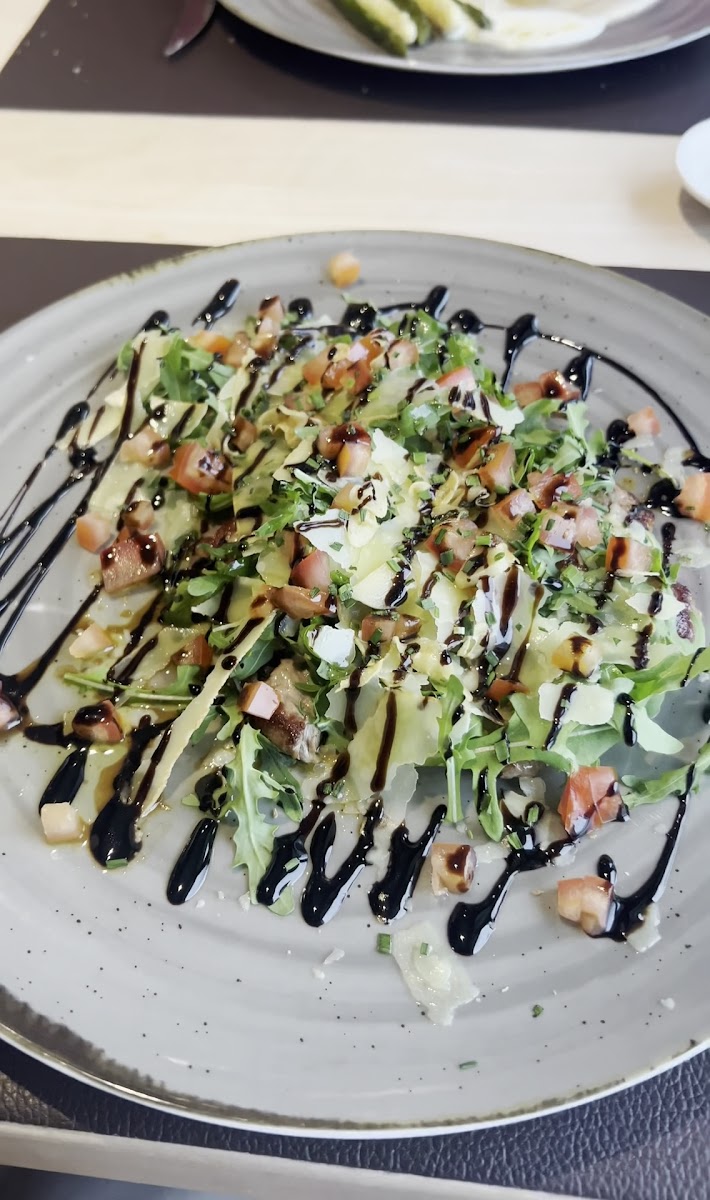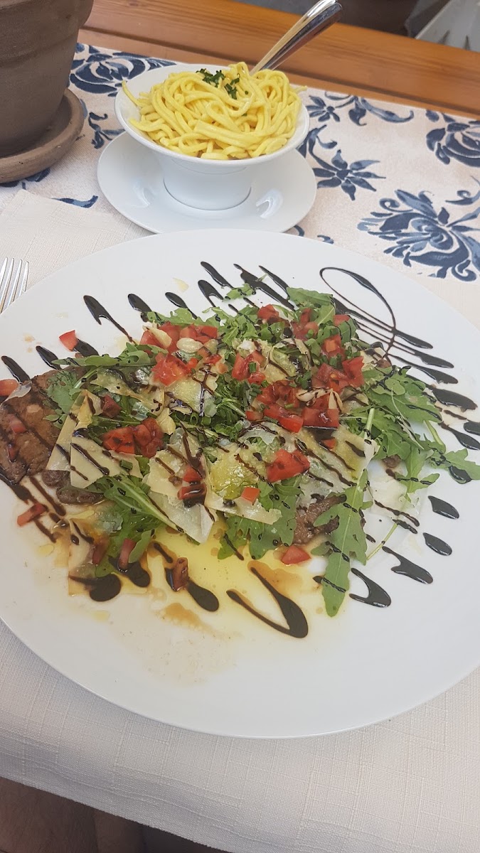 Here is the restaurant and staff Thanks to Fabio, I was able to finish my last day in Interlaken on a good note. I was worried because I didn't make a reservation, but they guided me to an outdoor seat, and there was an empty seat on the terrace, so I wanted to move, but they changed the table without me having to ask, so I was able to eat while enjoying the nice view. The steak was very tender, and the other dish was bread with cheese, bacon, and other ingredients on it, but Koreans might find the cheese flavor too strong, so I recommend a different menu.
