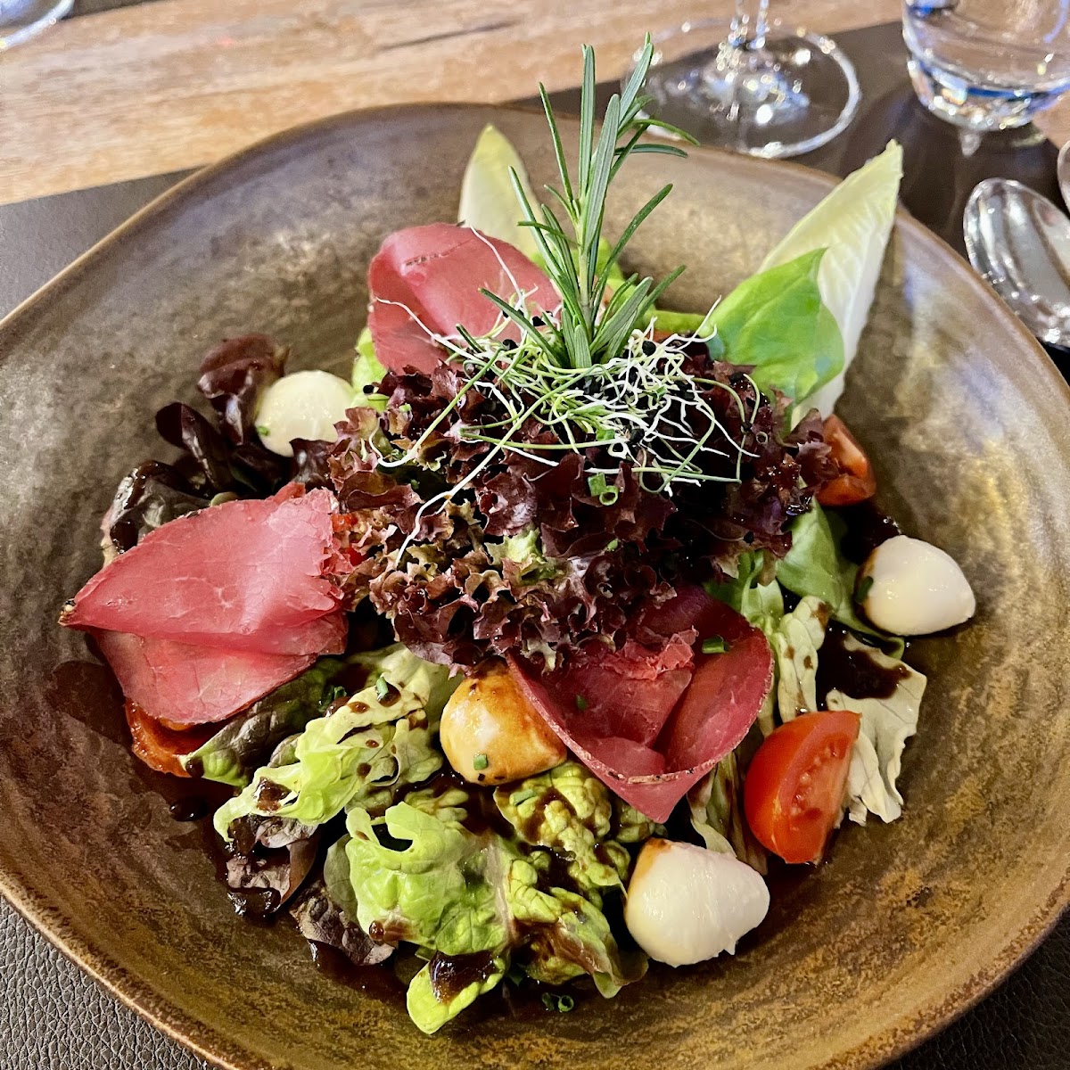 Clean, well-maintained and with a pleasing interior, this restaurant has it all: connection to public transport, amazing view and even better food. Either the shorter seasonal menu or the full card. I chose the rösti and this was phenomenal. Also, the alcohol free gin was great too, amazing to see driver friendly drinks on the menu. Also a good selection of desserts. I can very much recommend!